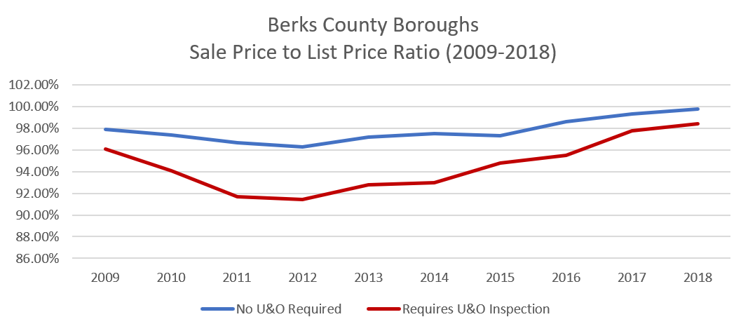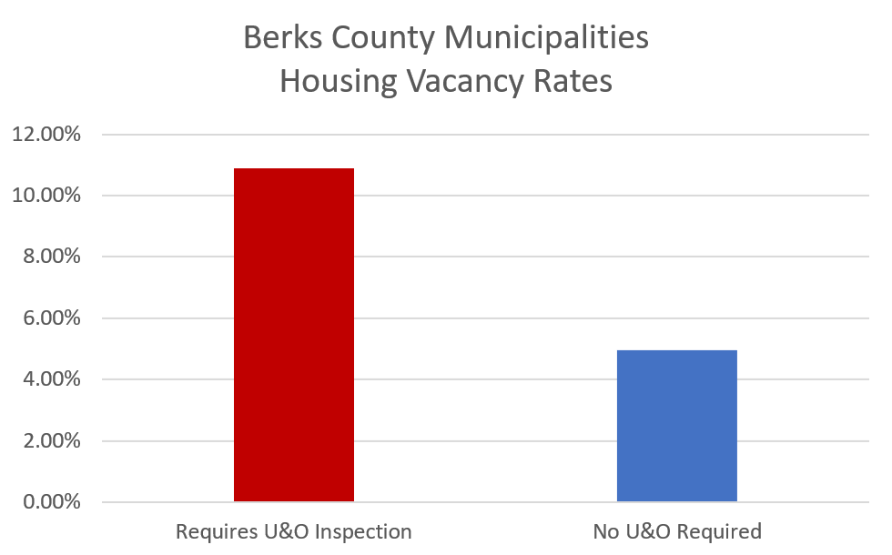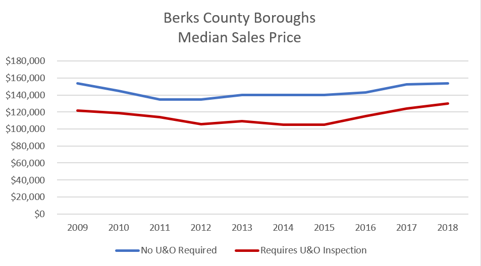 The vast majority of responsible homebuyers already pay for a private home inspection which is far more comprehensive that U&O inspections, and– unlike U&O inspections– provides the homeowners with a warranty in the event that anything is missed. Every dollar spent on redundant U&O inspection fees means one less dollar for them to put towards improving and maintaining their new home. This reduction in the amount we put into improving and maintaining our properties results in property values that significantly underperform other communities, a trend that is easy to see throughout the communities in Berks County which have enacted such ordinances.