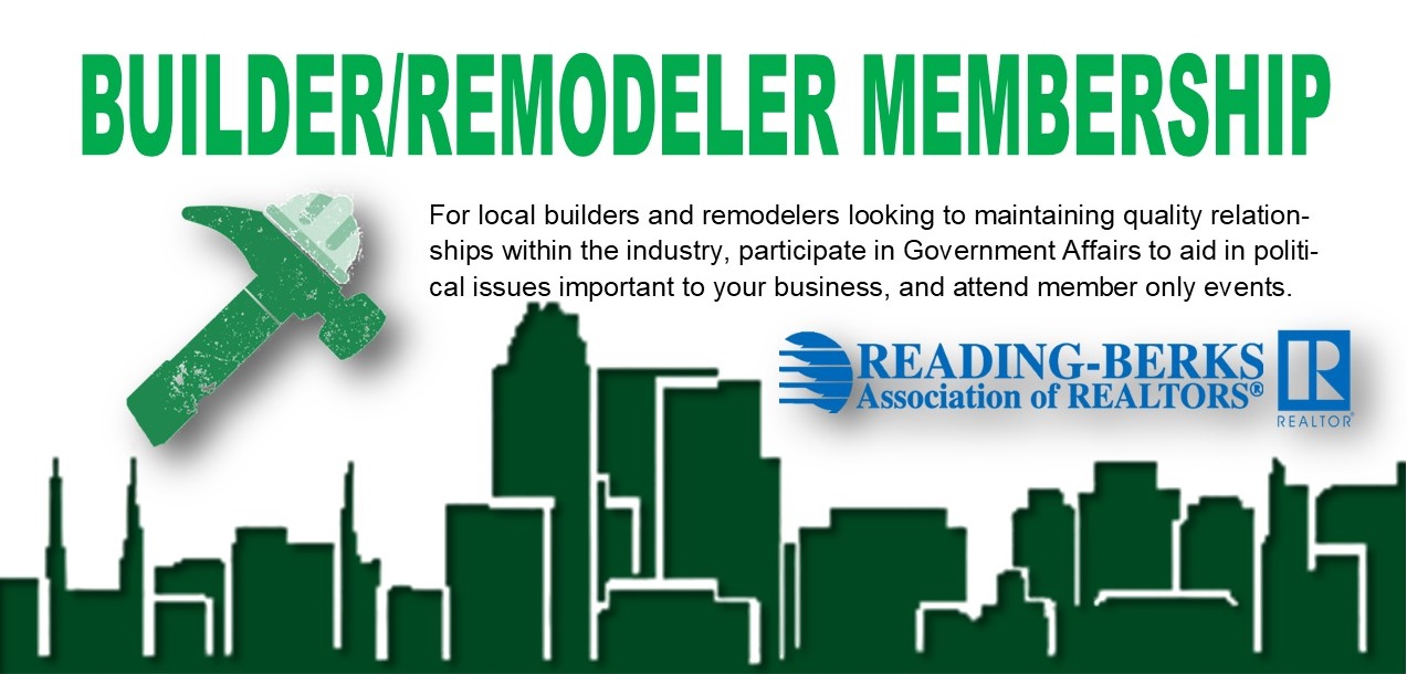 We are very excited to announce the new Builders/Remodelers Council of the Reading-Berks Association of REALTORS®. As per the Bylaws, Builder/ Remodeler members must be any primary representative of a business or legal entity who is in the business of, or employed by, a firm whose business is: building, remodeling, or trade contracting of: homes, apartments, schools, commercial, industrial, other structures, or in land development, shall be eligible to be a Builder/Remodeler Member. In order to qualify under this category, the business must register and obtain a Certificate of Registration as a contractor, issued by the Bureau of Consumer Protection (BCP), which contains a registration number assigned by the Bureau of Consumer Protection (BCP). Said registration number needs to be provided to the Board of Directors. If, at any time, the business fails to register or loses its Certificate of Registration, it will no longer qualify for membership.